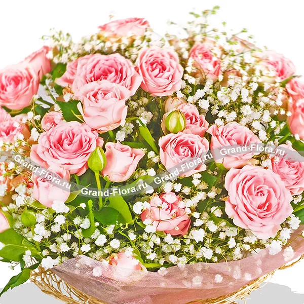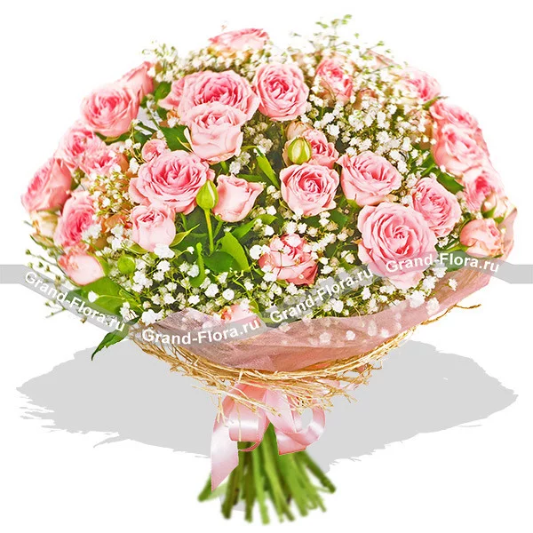 Нежный аромат цветов деликатен и ненавязчив, а сам букет может достойно украсить дом или офис. Этот букет для тех, кто любит делать подарки. Просто так. Для тех, кому важно хорошее настроение близких. Розовый цвет расскажет о Вашем веселом нраве и искренней симпатии, и каждый раз, вдыхая чудесный аромат, о Вас  будут вспоминать с улыбкой и нежностью.